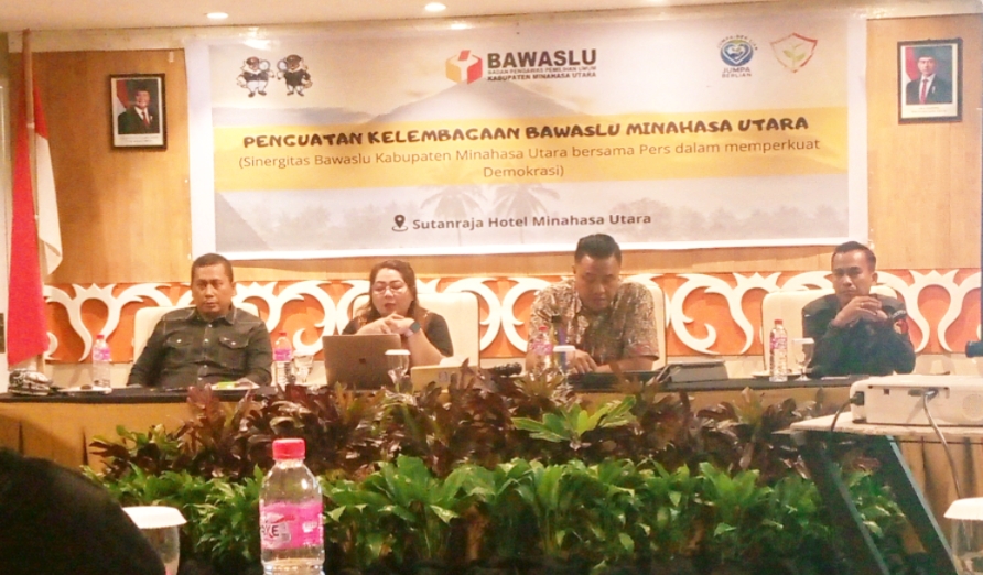 𝙈𝙄𝙉𝙐𝙏 – Penguatan Kelembagaan Badan Pengawas Pemilu (Bawaslu) Minahasa Utara (Sinergitas Bawaslu Kabupaten Minahasa Utara Bersama Media Pers Dalam Memperkuat Demokrasi) di Laksanakan di Ruang Maumbi Sutan Raja Hotel, Senin (08/9/2025).