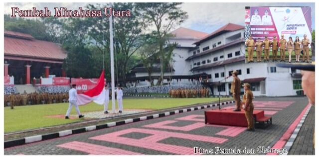 𝙈𝙄𝙉𝙐𝙏 – Memperingati Hari Olahraga Nasional (Haornas) ke 42 Tahun 2025, pemerintah Kabupaten Minahasa Utara di prakarsai oleh Dispora melaksanakan upacara, di Lapangan Kantor Bupati, Selasa (09/9/2025).