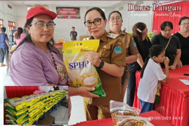 𝙈𝙄𝙉𝙐𝙏 – Pelaksanaan Gerakan Pangan Murah serentak beras Stabilisasi Pasokan dan Harga Pangan (SPHP) yang diadakan oleh Pemerintah Kabupaten Minahasa Utara Dinas Pangan di Desa Klabat Kecamatan Dimembe, Selasa (09/9/2025).