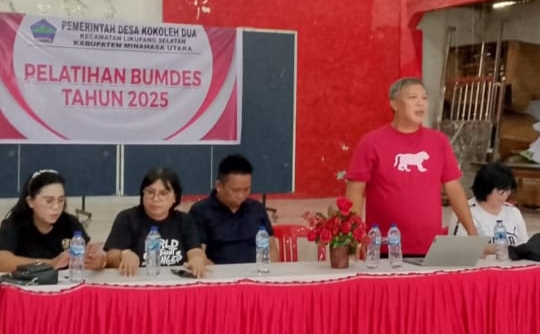 āššššš – Pemerintah Kabupaten Minahasa Utara dalam hal ini Pemerintah Desa Kokoleh II, Kecamatan Likupang Selatan menggelar kegiatan pelatihan pengelolaan BUMDes, bertempat di Aula Kantor Desa, Jumat (26/9/2025).