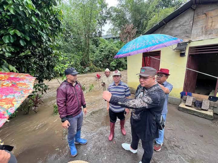 Wakil Bupati Kevin Lotulung didampingi Sekertaris Daerah Ir Novly Wowiling, Asisten Pemerintahan dan Kesra Umbase Mayuntu, Kepala Bapeda Hanny Tambani, Kepala Badan Keuangan Carla Sigarlaki, Camat Alexander Warbung dan Kumtua Gerald Kalesaran turun meninjau Desa yakni Mapanget, Kecamatan Talawaan, melihat rumah yang rusak akibat banjir.