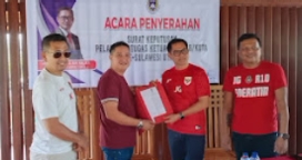 āDiketahui,Ā SK Plt ini diserahkanĀ oleh Joune Ganda didampingi oleh Sekretaris Asprov PSSI Sulut Vendry Rorimpandey dan Wakil Ketua Hengky Kawalo, Kadispora Minut serta pengurus PSSI Sulut lainnya, Selasa(30/10/2025) di Villa Rae Desa Kaima.