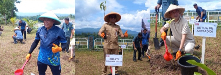 Kepala Kejaksaan Negeri Minahasa Utara 𝑰 𝑮𝒆𝒅𝒆 𝑾𝒊𝒅𝒉𝒂𝒓𝒕𝒂𝒎𝒂 memimpin langsung kegiatan aksi tanam pohon tersebut didampingi Bupati Minut 𝑱𝒐𝒖𝒏𝒆 𝑮𝒂𝒏𝒅𝒂, Ketua Pengadilan Negeri Airmadidi, Ketua Bawaslu Minut 𝑹𝒐𝒄𝒌𝒚 𝑨𝒎𝒃𝒂𝒓, Kordiv 𝑾𝒂𝒍𝒅𝒊 𝑴𝒐𝒌𝒐𝒅𝒐𝒎𝒑𝒊𝒕, Korsek 𝑴𝒊𝒄𝒉𝒂𝒆𝒍 𝑷𝒐𝒍𝒊𝒊, Ketua KPU Minut 𝑯𝒆𝒏𝒅𝒓𝒂 𝑳𝒖𝒎𝒂𝒏𝒂𝒖𝒘 dan Balai Pengelolaan DAS Sulut.