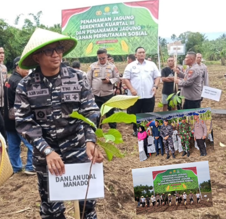 ๐ด๐ฐ๐ต๐ผ๐ป – Komandan Lanudal Manado ๐ณ๐๐๐๐๐ ๐ณ๐๐๐ (๐ท) ๐จ๐๐๐๐๐ ๐บ๐๐ ๐บ๐๐๐๐๐๐ hadiri penanaman jagung serentak kuartal III dan Penanaman Jagung di Lahan Perhutanan sosial Polda Sulawesi Utara di Desa Laikit Dimembe, Rabu (09/07/2025).