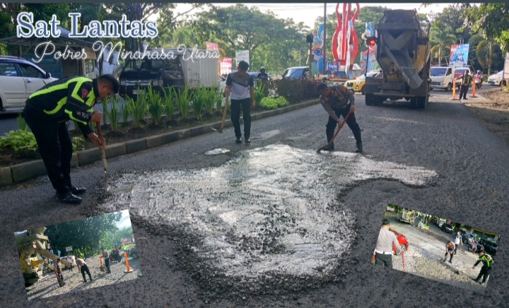 āāKapolres Minahasa Utara AKBP Auliya Djabar SIK melalui Kasat Lantas š°ššš š°ššššš š«ššš, šŗ, šŗšš menyebutkan kami Sat Lantas Polres Minahasa Utara (Minut) telah melaksanakan penampalan jalan. Namun, ini dampak dari curah hujan yang tinggi atau deras sehingga membuat jalan yang ada di Zero Point tersebut rusak.