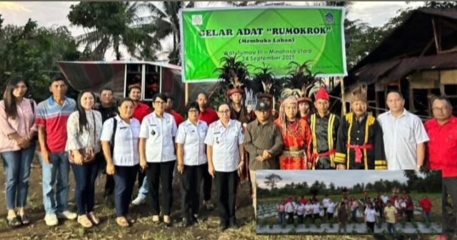 𝙈𝙄𝙉𝙐𝙏 – Kelompok pemerhati budaya dan tani menggelar Tradisi membuka lahan pertanian yang dikenal dalam bahasa suku Minahasa ‘Adat Rumokrok’, di Perkebunan Cabe Desa Watutumou 3 Jaga 10 Kecamatan Kalawat, Rabu (24/9/2025).