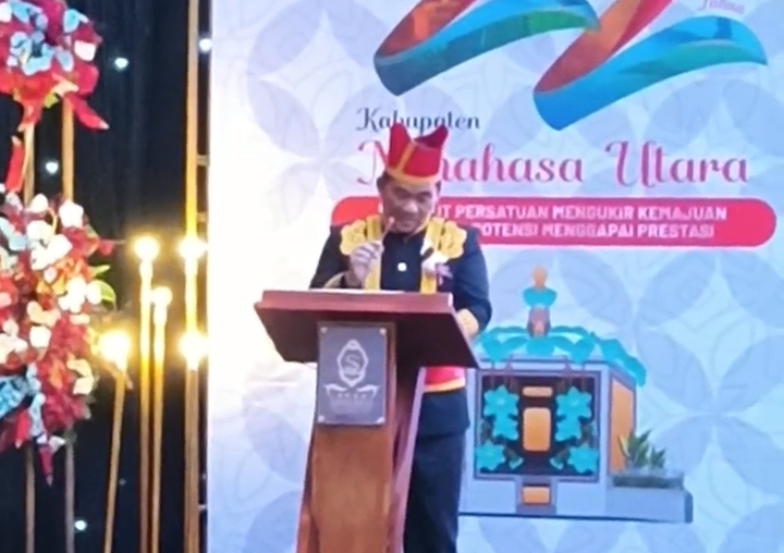 โ๐ด๐ฐ๐ต๐ผ๐ป – Usai melaksanakan upacara memperingati Hari Ulang Tahun Kabupaten Minahasa Utara (Minut) ke 22 Tahun, di lanjutkan dengan Rapat Paripurna yang digelar Dewan Pimpinan Rakyat Daerah (DPRD) Kabupaten Minahasa Utara, di Convention Sutan Raja Hotel Watutumou, Kamis (20/11/2025).