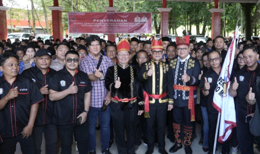 𝙈𝙄𝙉𝙐𝙏 – Persatuan Jurnalis Biro Minahasa Utara (PJBM) yang dinahkodai Fernandus Yusi Adam sebagai Koordinator, resmi dikukuhkan di moment HUT Kabupaten Minahasa Utara ke 22 Tahun oleh Bupati 𝑱𝒐𝒖𝒏𝒆 𝑮𝒂𝒏𝒅𝒂, di Pendopo Pemkab Minut, Kamis (20/11/2025).
